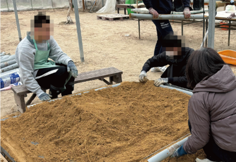 現在は作業場での作業を委託しているが、今後は作業内容を増やし、ほ場での農作業も視野に⼊れていきたい。