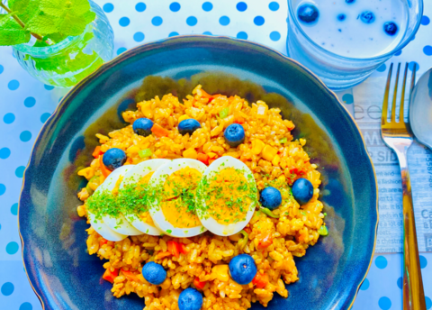 果物はそのまま食べたりスイーツにすることが多いのですが、ブルーベリーの鮮やかな色と甘酸っぱい美味しさは、夏の料理にピッタリと思い色々試してみました。